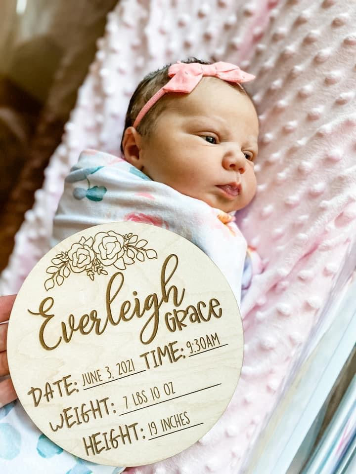 Customize this 7" birth announcement with your baby's name, date & time of birth, weight & height! Includes a stand so you can easily display this beautiful piece!