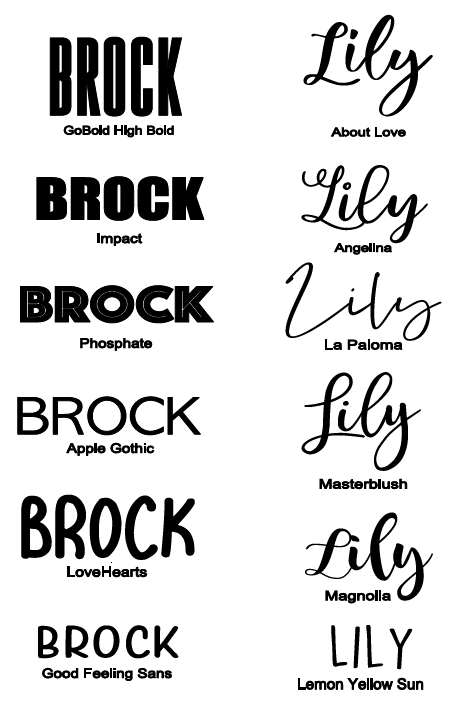 Font Choice: GoBold High Bold Impact Phosphate Apple Gothic LoveHearts Good Feeling Sans About Love Angelina La Paloma Masterblush Magnolia Lemon Yellow Sun