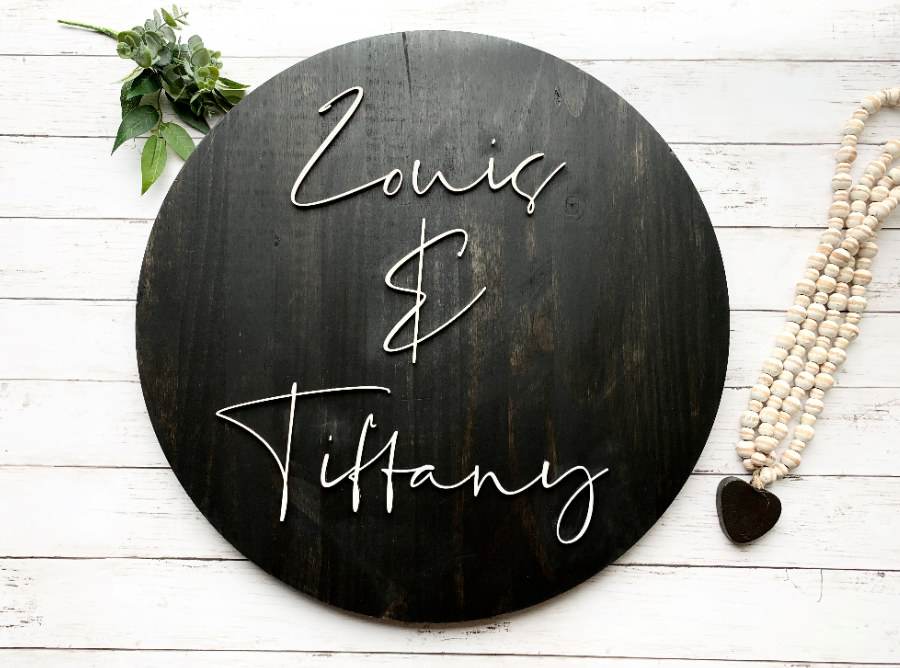 Personalize this 3D sign with two names.